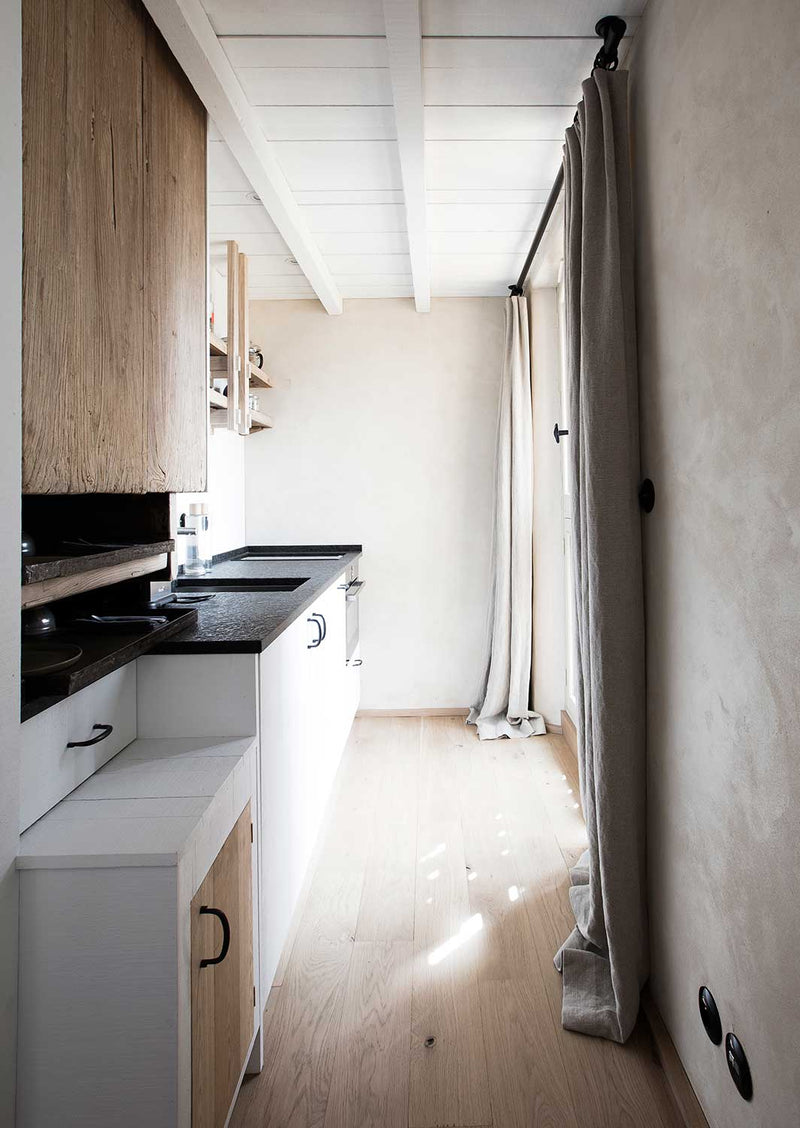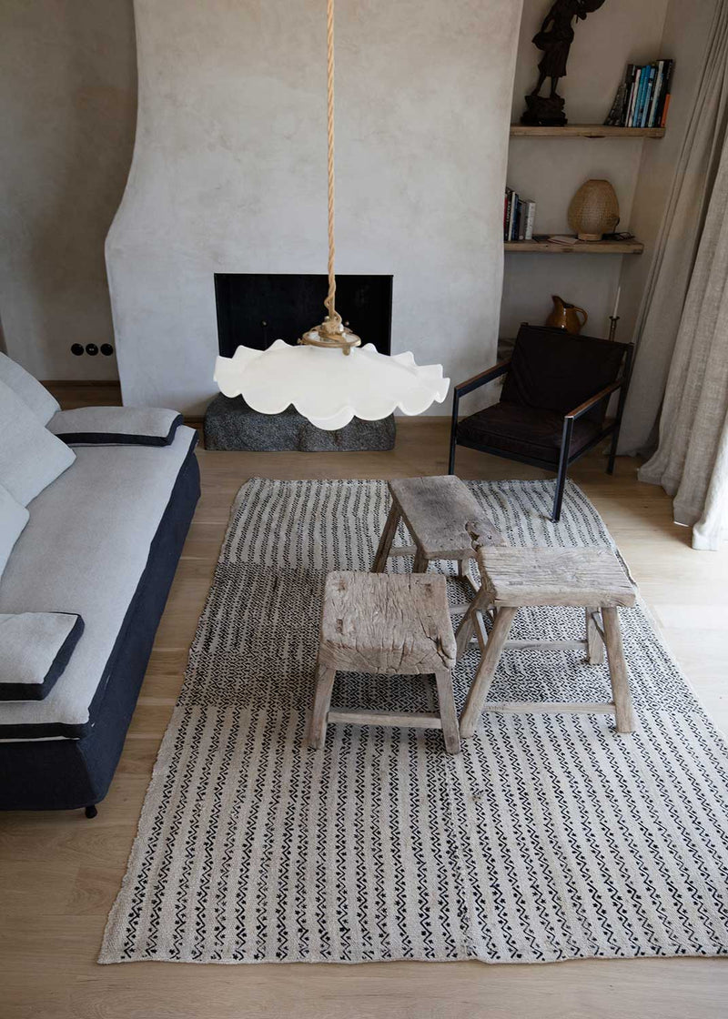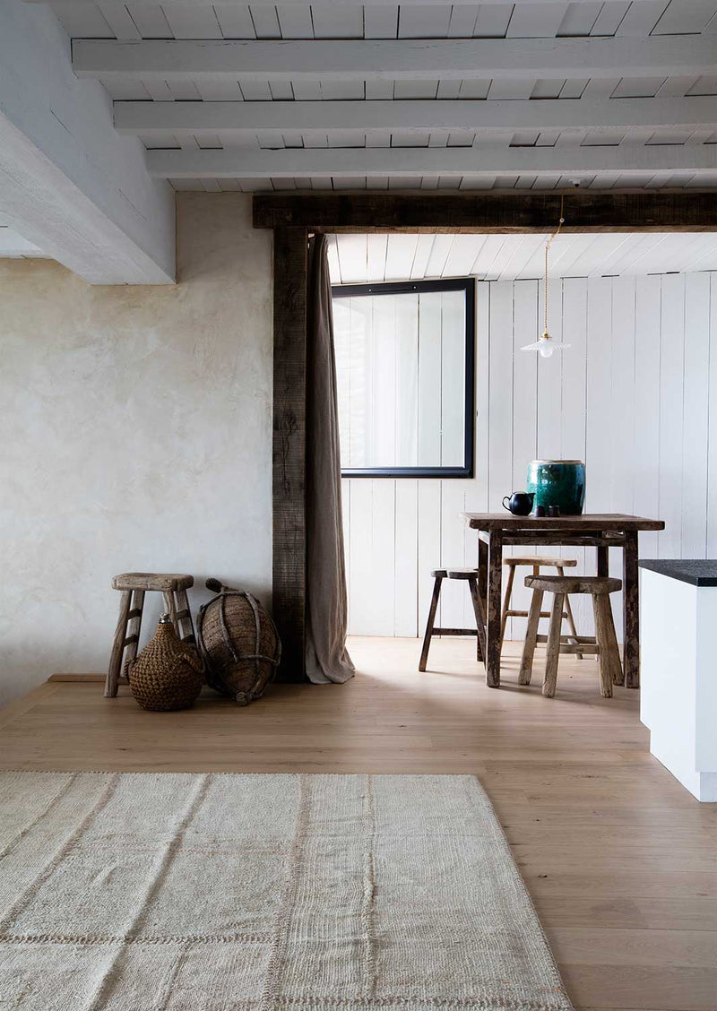 Chaque détail a été conçu pour sublimer la beauté brute du lieu — le bois patiné, la pierre, les tissus naturels et la lumière douce composent une atmosphère apaisée, presque hors du temps.