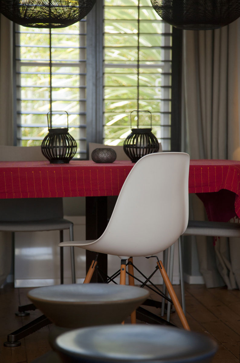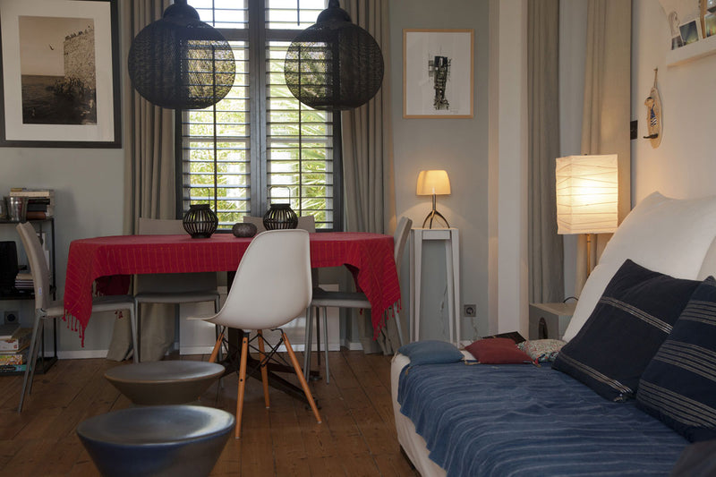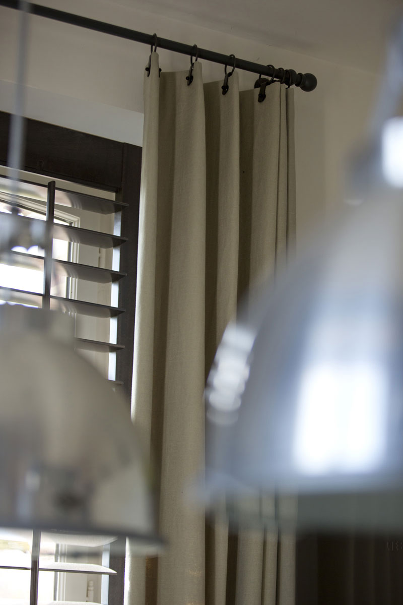 Les détails font la différence : luminaires au design épuré, objets déco choisis avec soin, rideaux confectionnés sur mesure pour répondre aux proportions des fenêtres et filtrer la lumière selon les moments de la journée. Le tout compose une harmonie discrète, sans ostentation, mais avec une forte identit