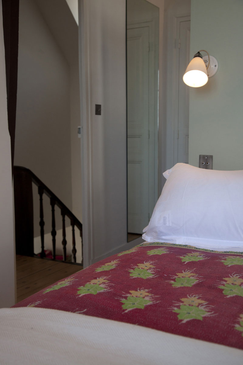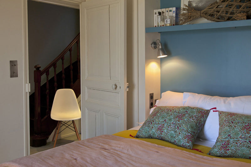 Dans les chambres, l’ambiance joue sur le contraste entre sobriété et confort : linge de lit en matières nobles, jetés légers, coussins aux teintes brumeuses ou sable, une touche de bleu‑gris évoquant l’horizon maritime. Chaque espace est pensé pour inviter au repos, à la déconnexion, tout en gardant une élégance mesurée.